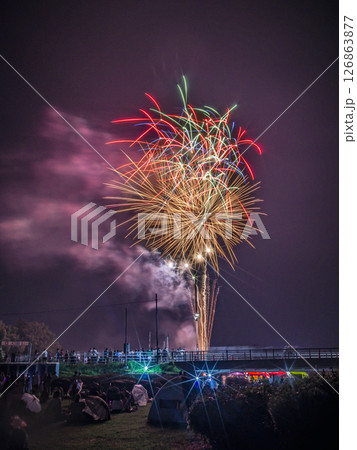 霞ヶ浦湖上の打ち上げ花火 小美玉市花火大会の風景