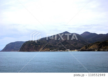 伊豆半島の風景 駿河湾フェリーから見た土肥の町並み