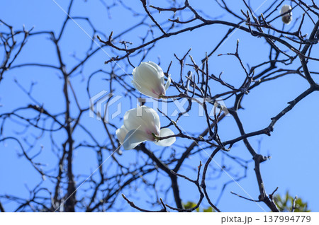 真っ青で鮮やかな5月の空と浮かぶ白い雲。