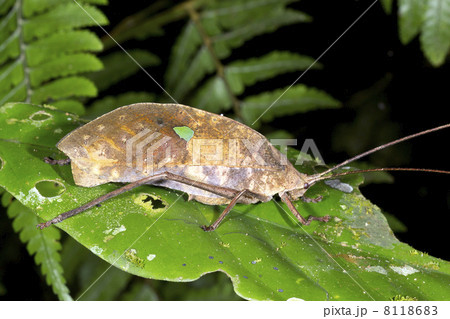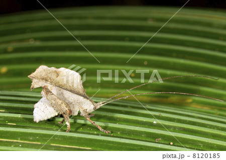 Leaf mimic katydid in the rainforest understory, Ecuador