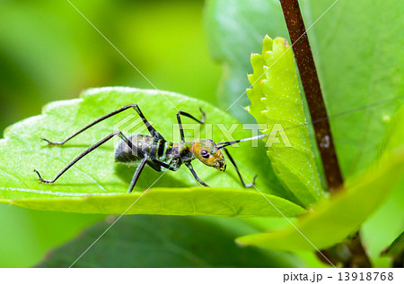 Greel leaf mimic katydid camouflaged in the rainforest understor