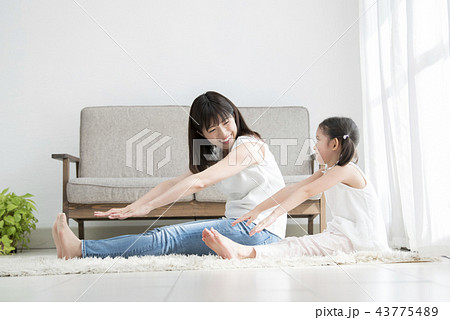 ストレッチをする親子