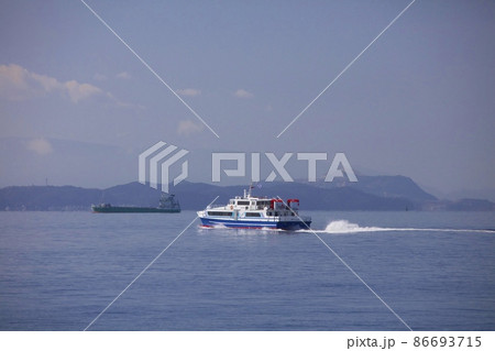 姫路港を出発する連絡船・高速いえしま/遠景に家島諸島
