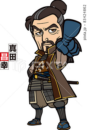 武装して正面を向いて指をさす真田昌幸【3頭身】