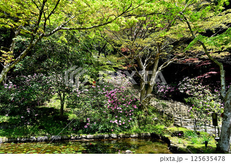 杉並区にある蓮華寺の境内に咲いている赤いツツジ