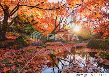北海道 真鍋庭園の紅葉と池