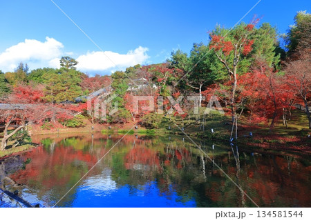 【京都府】快晴の高台寺の臥龍池と紅葉