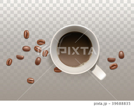 Vector realistic cup of coffee with coffee beans