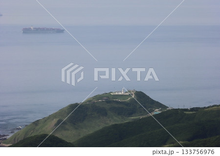 日本 青森県北津軽郡の眺瞰台の展望台からの津軽海峡