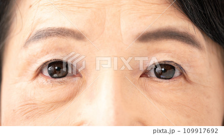 女性 シニア 目元 アップ