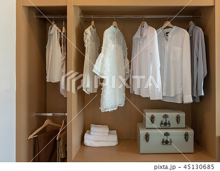 modern closet with clothes
