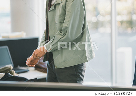 上着を着る男性