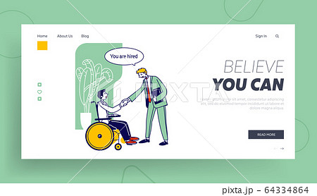 Disability Employment, Work for Disabled People Website Landing Page. Handicapped Man Sit in Wheelchair