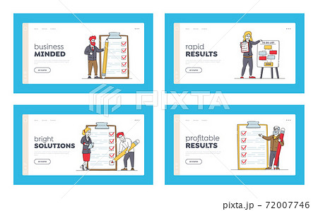 Businesspeople Characters with Checklist Landing Page Template Set. Scheduling Planning with Check List. Business People