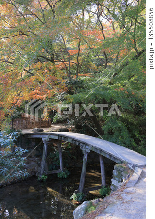 栗林公園、西湖南端の睡竜潭と南湖を分つ留玉梁の紅葉