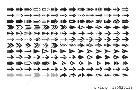Monochrome pictures of modern arrows in different styles
