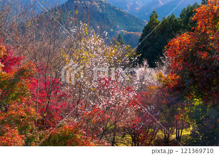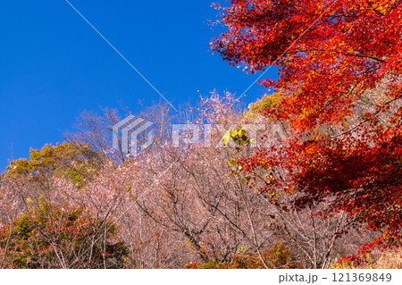 埼玉県児玉郡神川町矢納 冬桜と紅葉の名所町立城峯公園 満開の冬桜ともみじなどの紅葉の競演