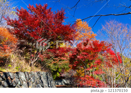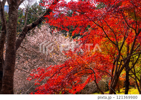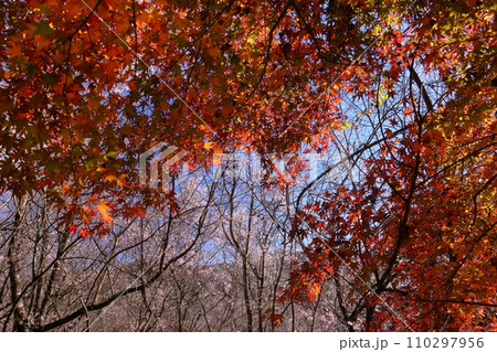 埼玉県児玉郡神川町矢納 冬桜と紅葉の名所町立城峯公園 真っ赤に紅葉したもみじ