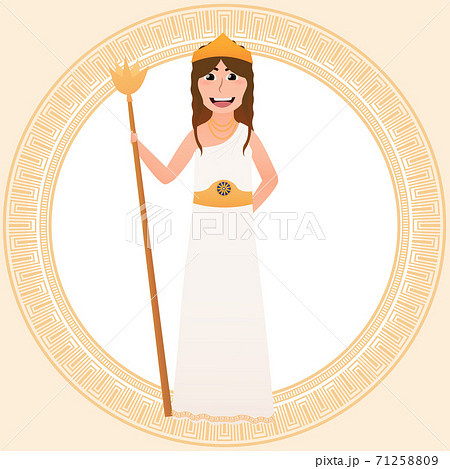 Hera Olympian pantheon goddess, ancient greece character in cartoon style, little girl in costume for masquerade