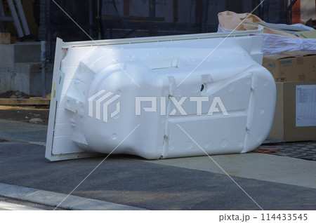 取付工事を待つユニットバスの様子