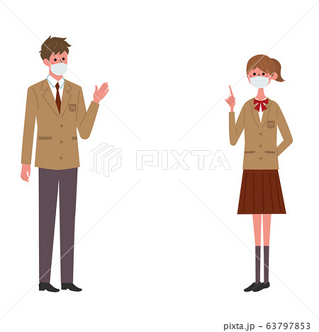 マスクをつける 高校生 学生 中学生 こども イラスト