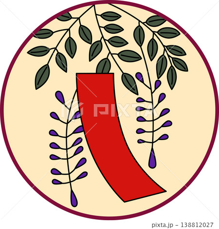 線画円形シンプル花札 卯月 藤 赤短 4月 藤に赤短