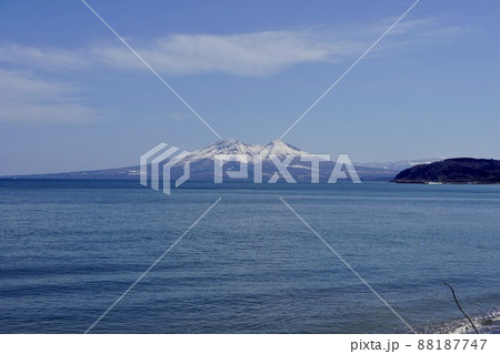 青い空と海が一帯の優美な北海道駒ヶ岳