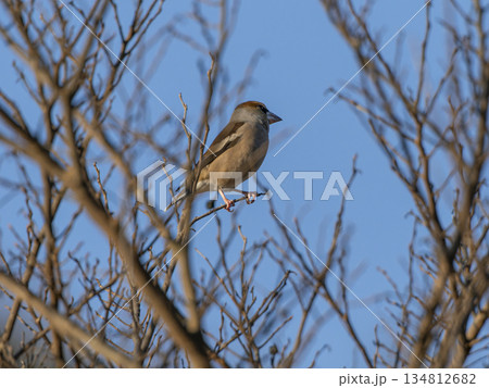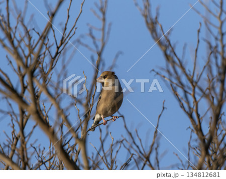 木の枝に止まるシメ