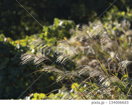秋の山に生えるススキ