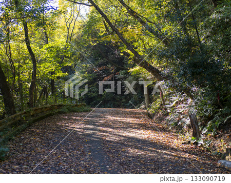 落ち葉が堆積した秋の山道
