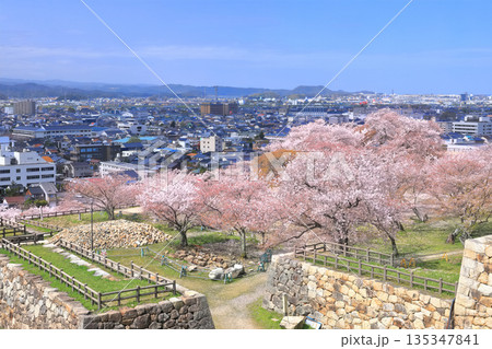 鳥取県鳥取市 満開の桜と鳥取城跡から見る快晴の鳥取の街並み