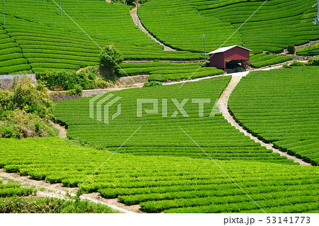 京都府景観資産・和束町石寺地区・新緑の茶畑・雲の影