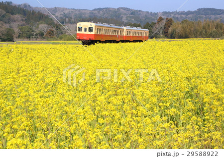 千葉県市原市石神の菜の花畑を通る小湊鉄道の風景