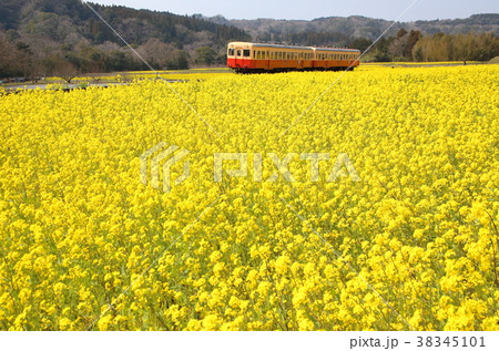 菜の花畑を走る小湊鉄道 石神菜の花畑