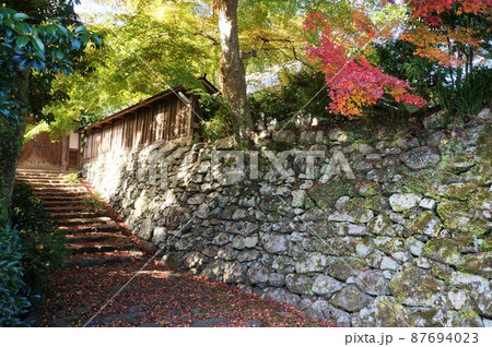 穴太衆積みの石垣と紅葉(滋賀県大津市)