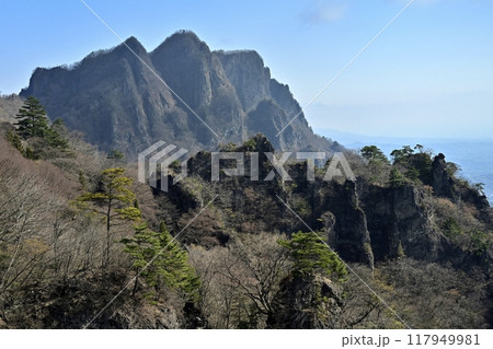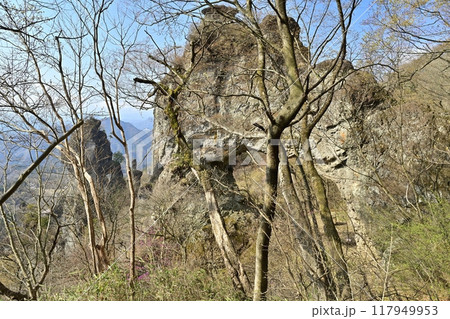 妙義山石門巡りコースの見晴台から第四石門の岩峰