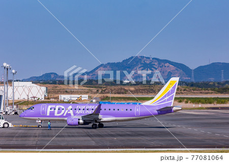 牧之原市の富士山静岡空港の飛行する飛行機(静岡県)
