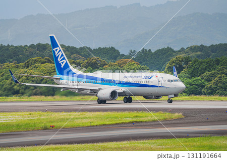 牧之原市の富士山静岡空港の滑走路を走行する飛行機(静岡県)