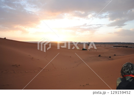 日没前のモロッコ南部ムハミド・エル・ギズランのサハラ砂漠
