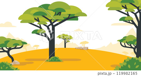 Sandy desert landscape. Sand wilderness view, dunes and sand pyramids landscape flat vector background illustration. Cartoon desert view