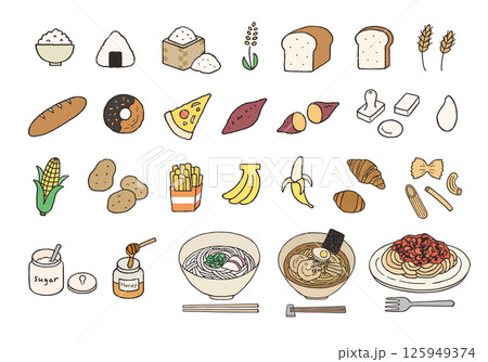 糖質を多く含む食品のイラストセット