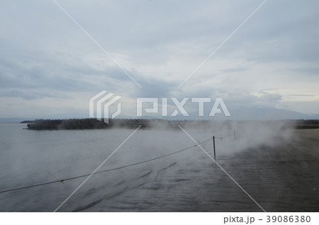 砂浜にたちこめる湯気(鹿児島県指宿市)