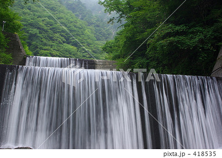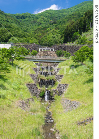 足尾砂防堰堤付近から上流方面の眺め 自然の再生 初夏の風景