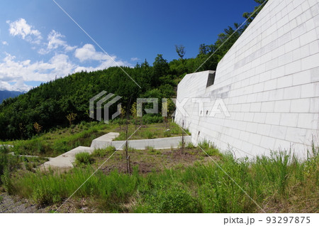 信州 白馬村の砂防施設 沢尻沢 砂防堰堤 堰堤を壁面材で覆った土石流に対応した堰堤