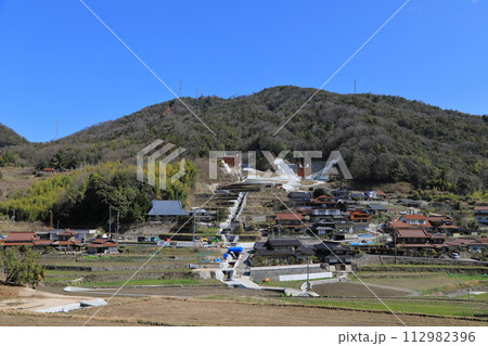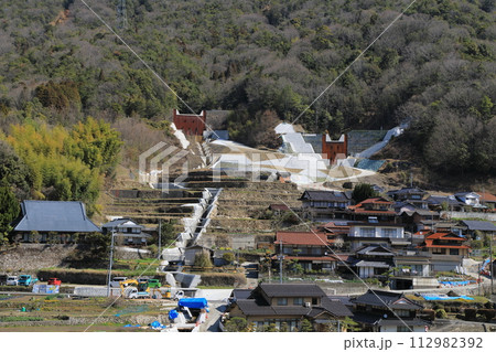 砂防堰提工事現場 空撮 横位置.