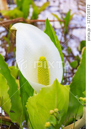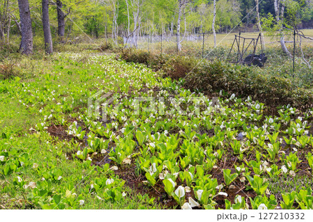初夏の尾瀬 新緑と満開の水芭蕉 研究見本園