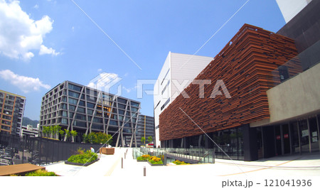 東京外国語大学 研究講義棟 中央広場から 夏の青空 東京都府中市