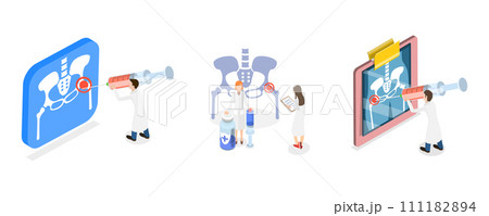 3D Isometric Flat Conceptual Illustration of Hip Joint Cortisone Injection, Bones of the Pelvis and Hip, Human Anatomy