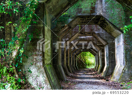 山道に映える八角トンネル風景 (観光スポット 八角トンネル 下益城郡美里町 )