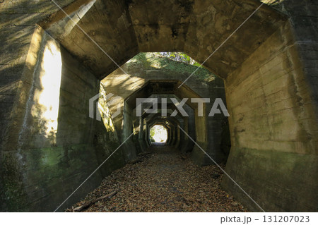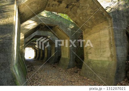 秋の季節に山道・林道に映える八角トンネル風景(観光スポット 八角トンネル 下益城郡美里町 )